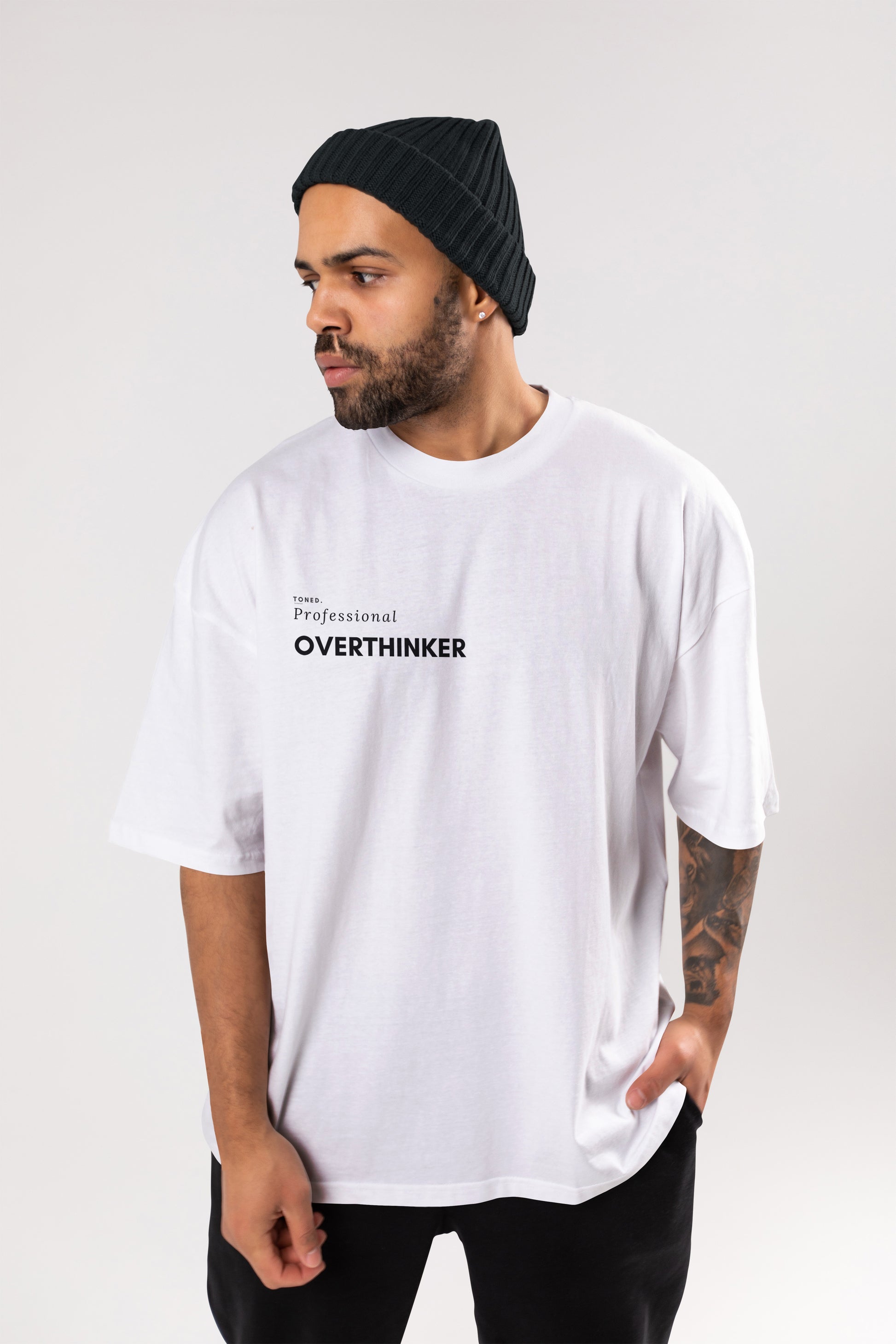 The Professional Overthinker Oversized T-Shirt, exclusively designed by Toned. This bold and minimalist design speaks to the thinkers, dreamers, and perfectionists who embrace their unique mindset.